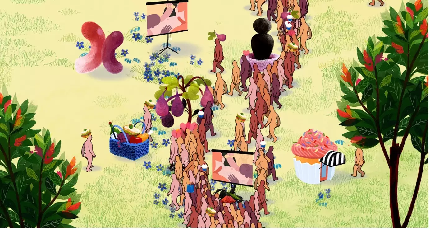 ‘On a basic level, the peeps have a lot of possibilities for pleasure. They can dance, they can eat something delicious, they can make out with each other, they can enjoy their surroundings,’ Yang says. ‘But I think it’s also just pleasurable to tinker and play around with this world. I think that speaks to a queer politics and how that treats activism. Discussions around activism, politics, the politics of statutes and the politics of the internet don't have to be terrible. They can be pleasurable. Saving the world and figuring out how to fix everything can be great. It can be orgasmic if we want it to, we just have to want that enough. I'm trying to imagine pleasure as something that's not selfish or apolitical but rather something that can be tied to politics and seeing a better world for ourselves.’